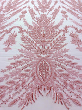 Rózsaszín Couture Csipke Szimmetrikus Mintával, Gyöngyökkel és Flitterekkel