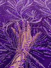 Sötétlila Couture Csipke Gyöngyökkel és Flitterekkel