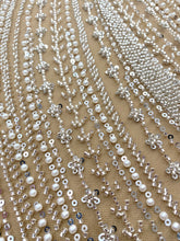 Ezüst Couture Csipke Nude Tüllön Geometrikus Mintával, Gyöngyökkel és Flitterekkel