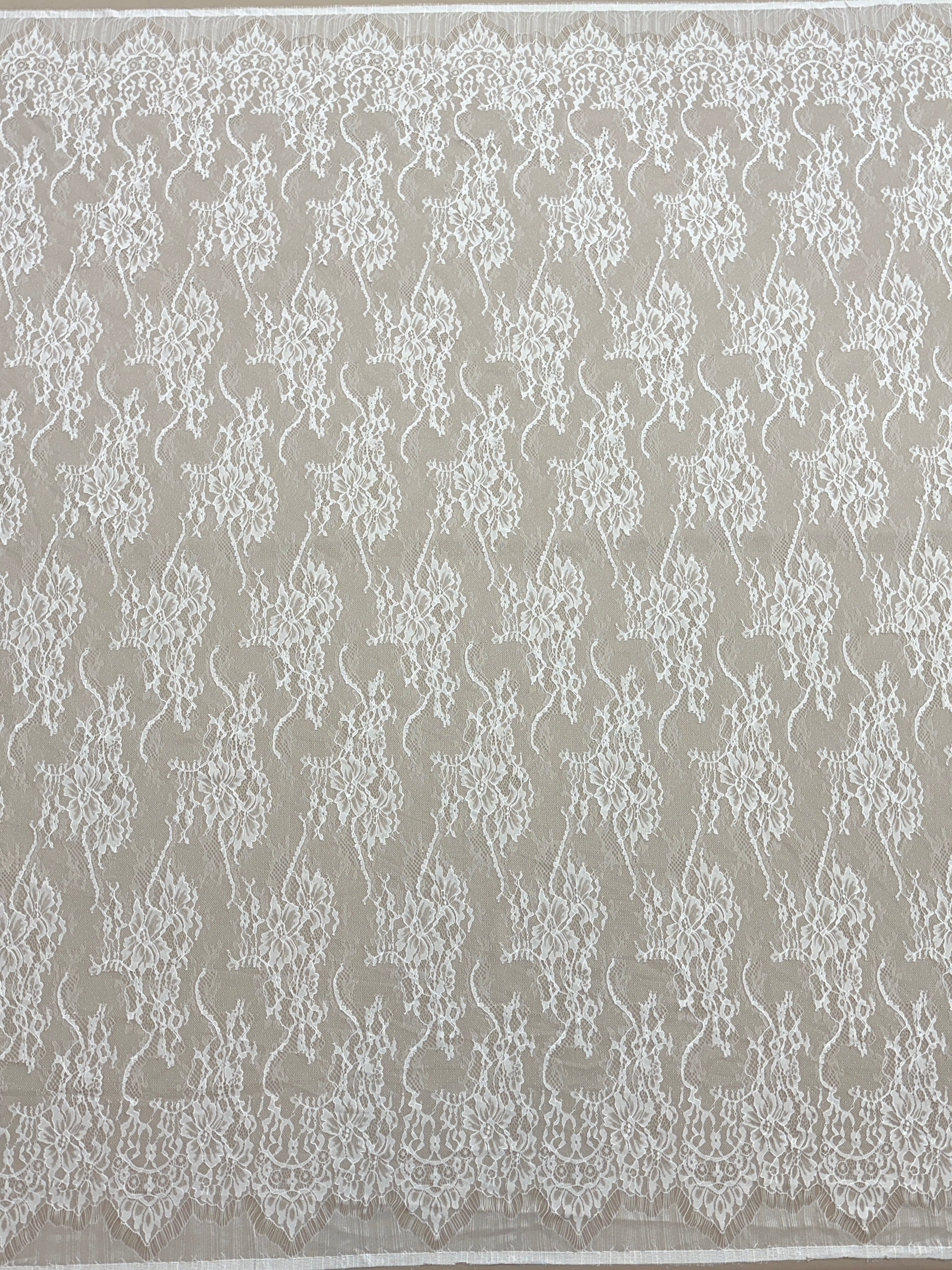 Livrata sub forma de cupon, aceasta dantela Chantilly ofera flexibilitate maxima pentru proiecte vestimentare de impact, fiind preferata de creatori, ateliere si designeri couture.