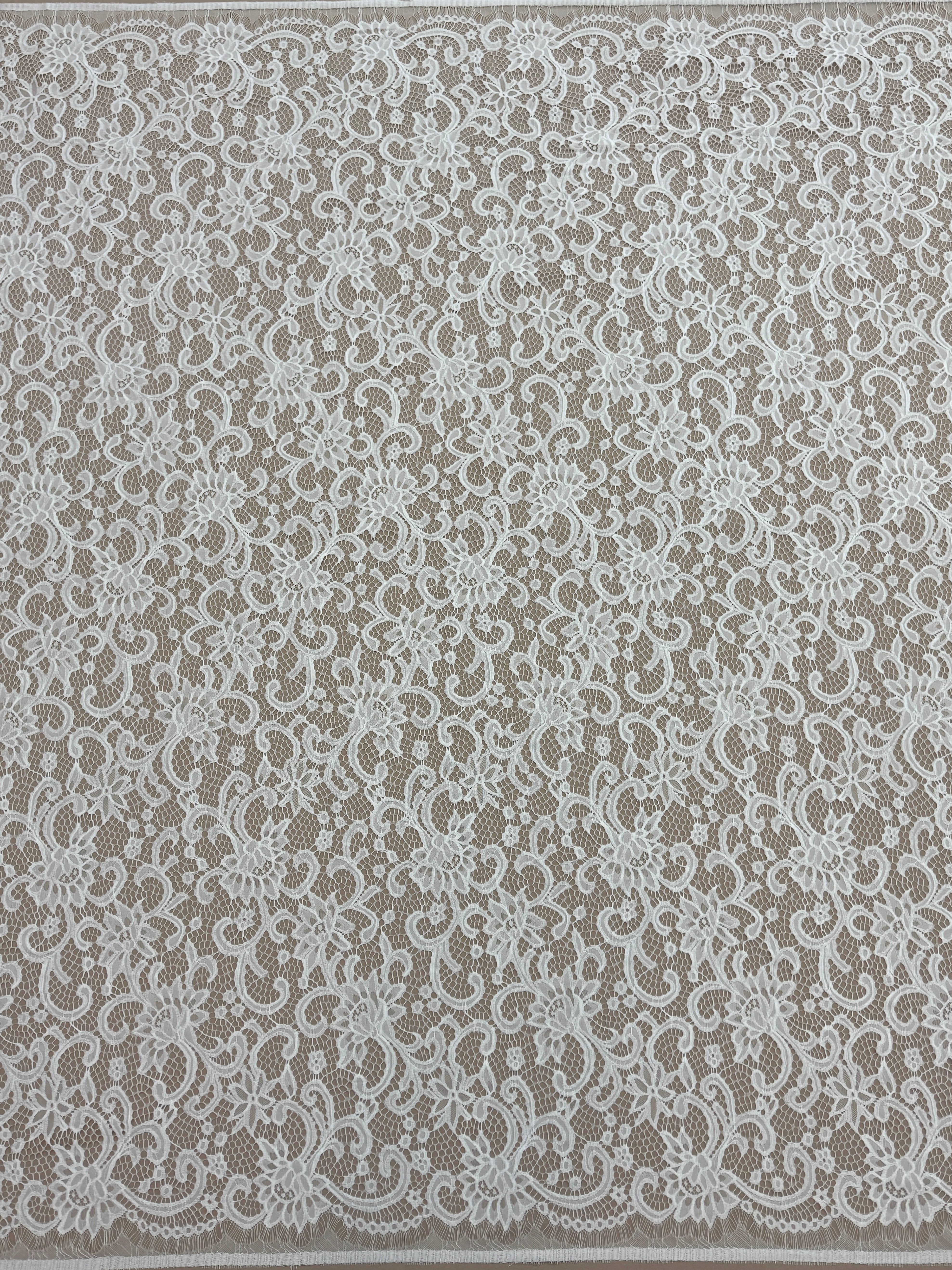 Livrata sub forma de cupon, aceasta dantela Chantilly ofera flexibilitate maxima pentru proiecte vestimentare de impact, fiind preferata de creatori, ateliere si designeri couture.