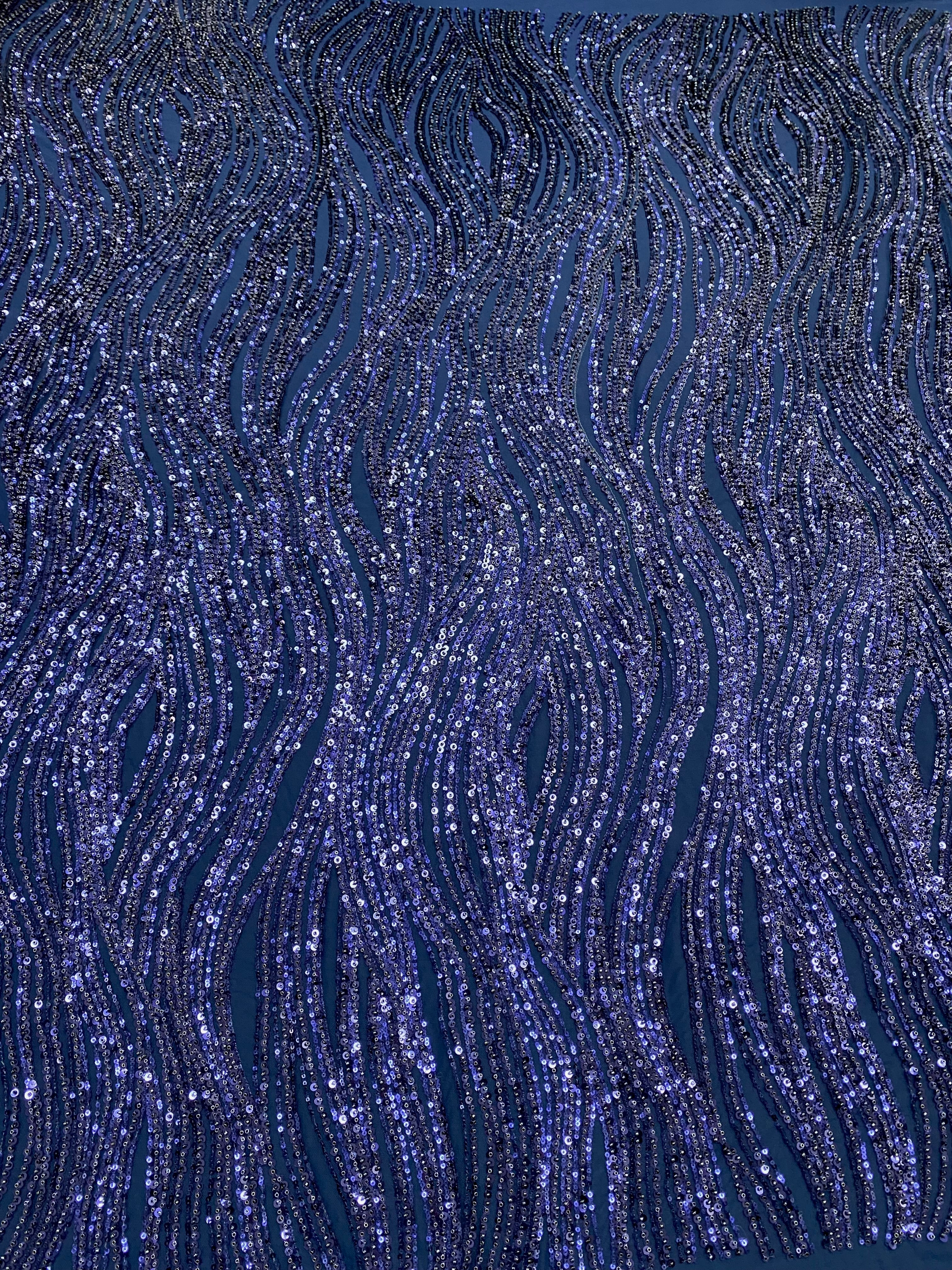 Dantela Couture Bleumarin cu Model Liniar, cu Margele si Paiete