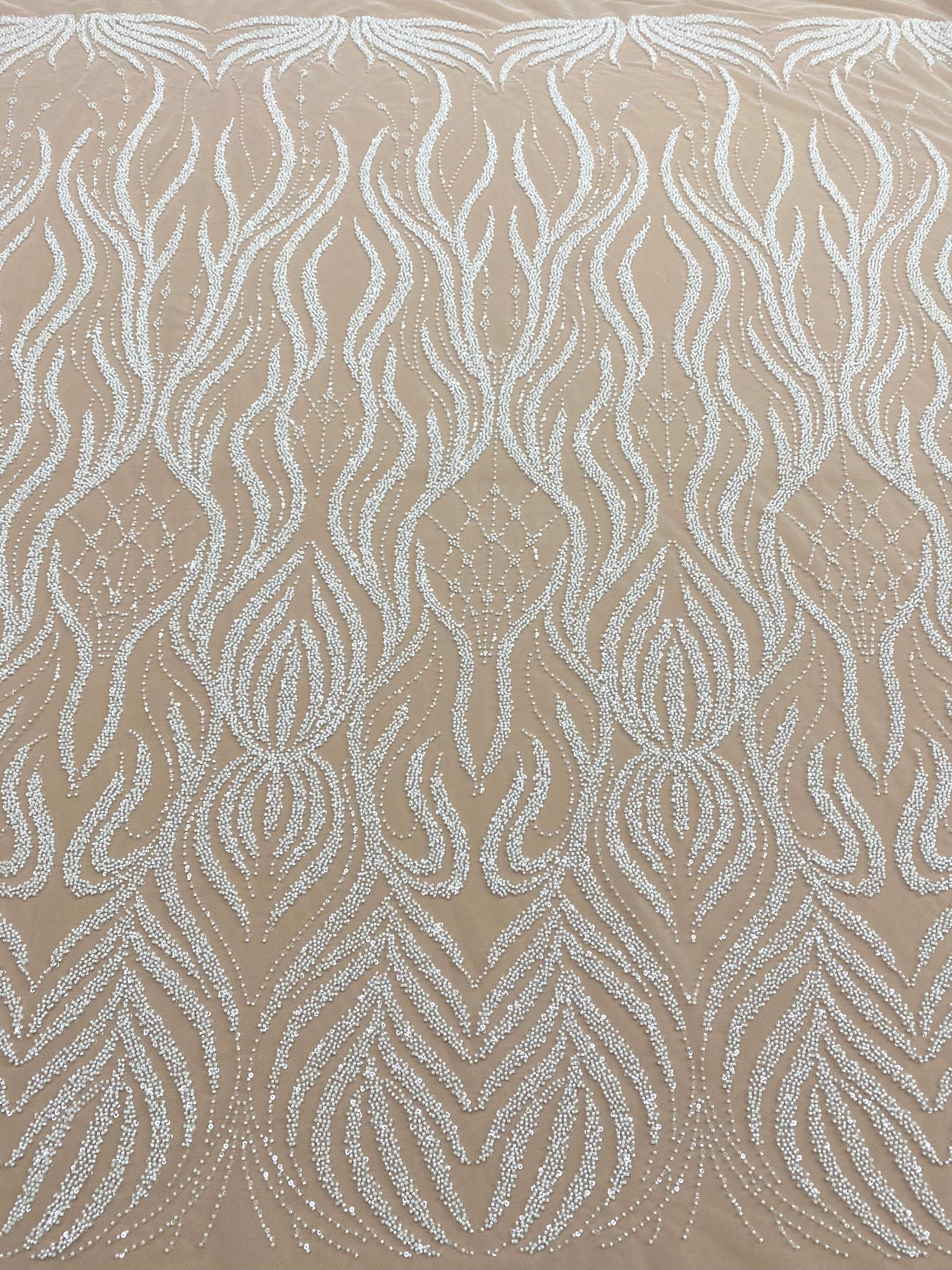 Dantela Couture Ivory cu Model Geometric, cu Margele si Paiete