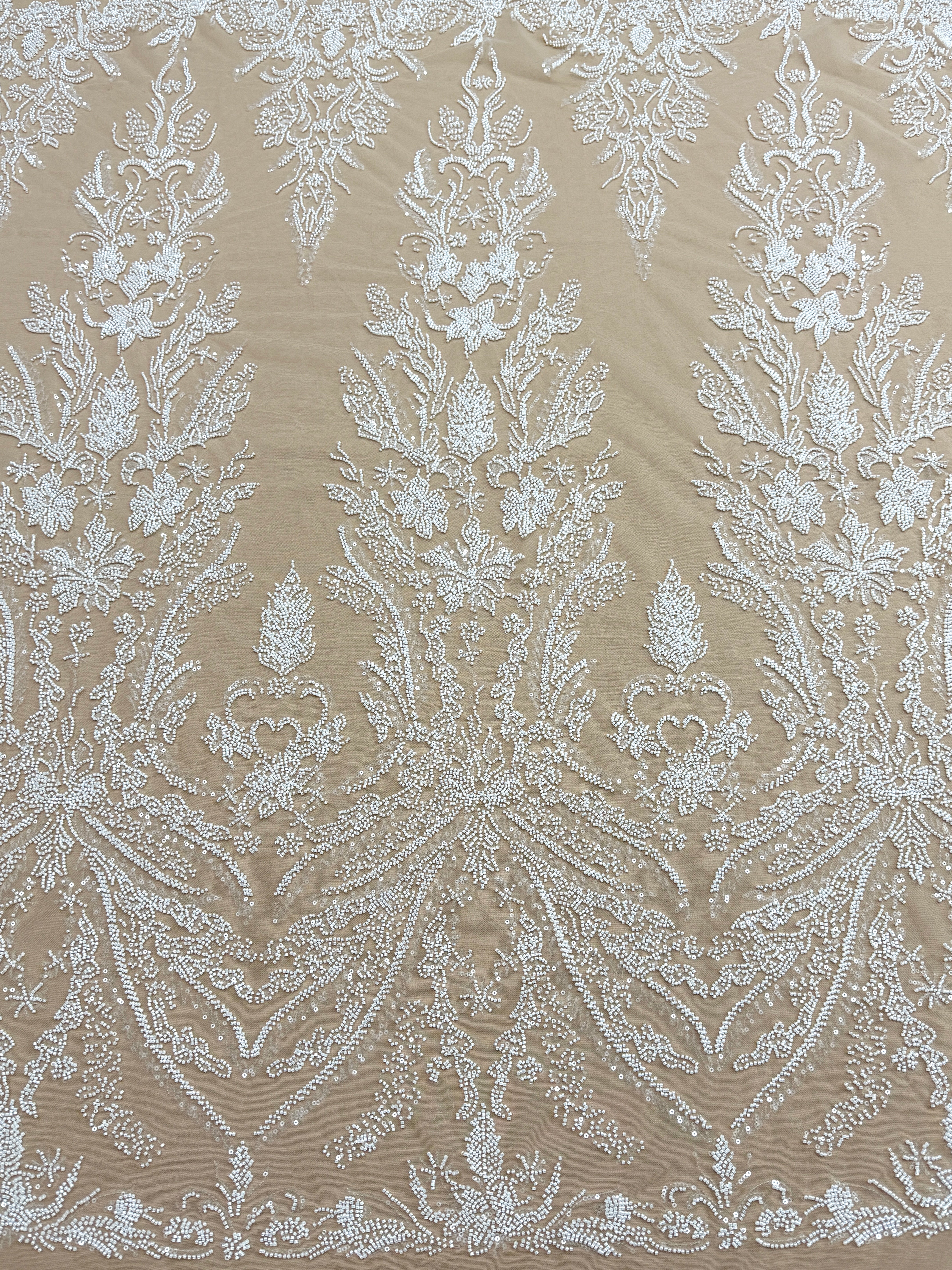 Dantela Couture Ivory pe Tulle Nude cu Model Floral, cu Margele si Paiete