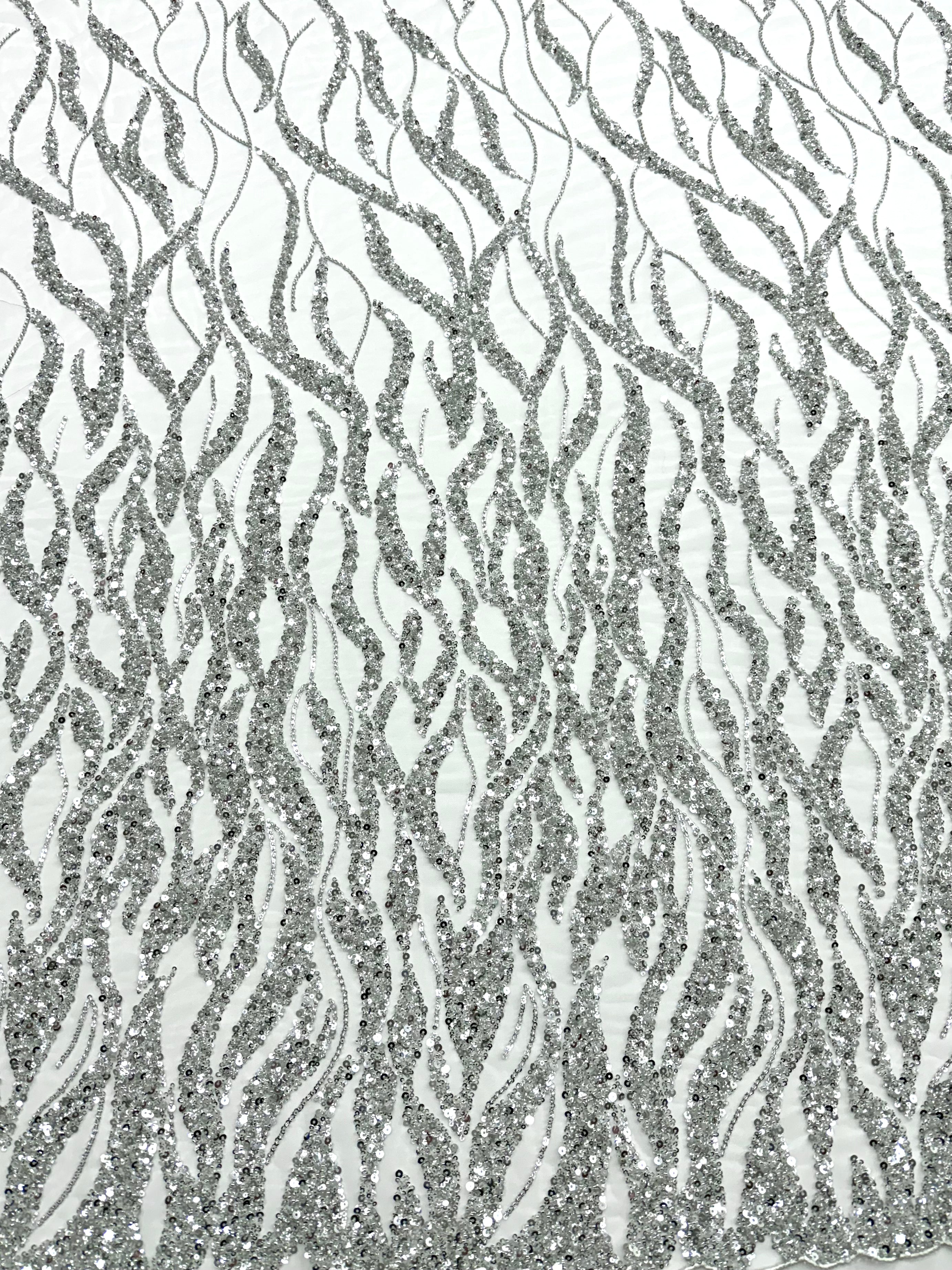 Csipke Couture ezüst tüllön, elefántcsont színben, gyöngy- és flitterfüzérekkel, gyöngyökkel és flitterekkel