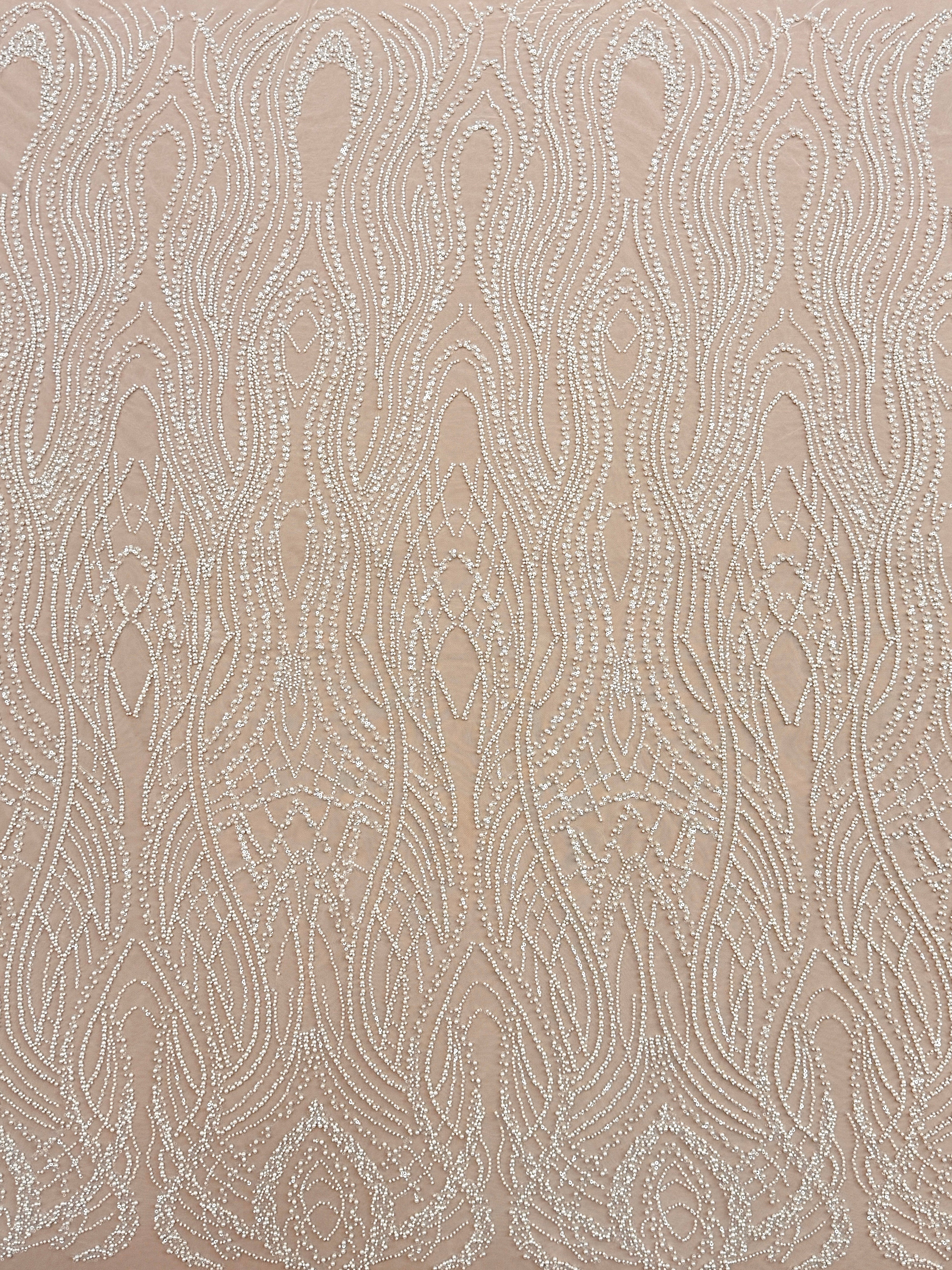 Cupon 1.50 m din Dantela Couture Ivory cu Perle, Margele si Paiete