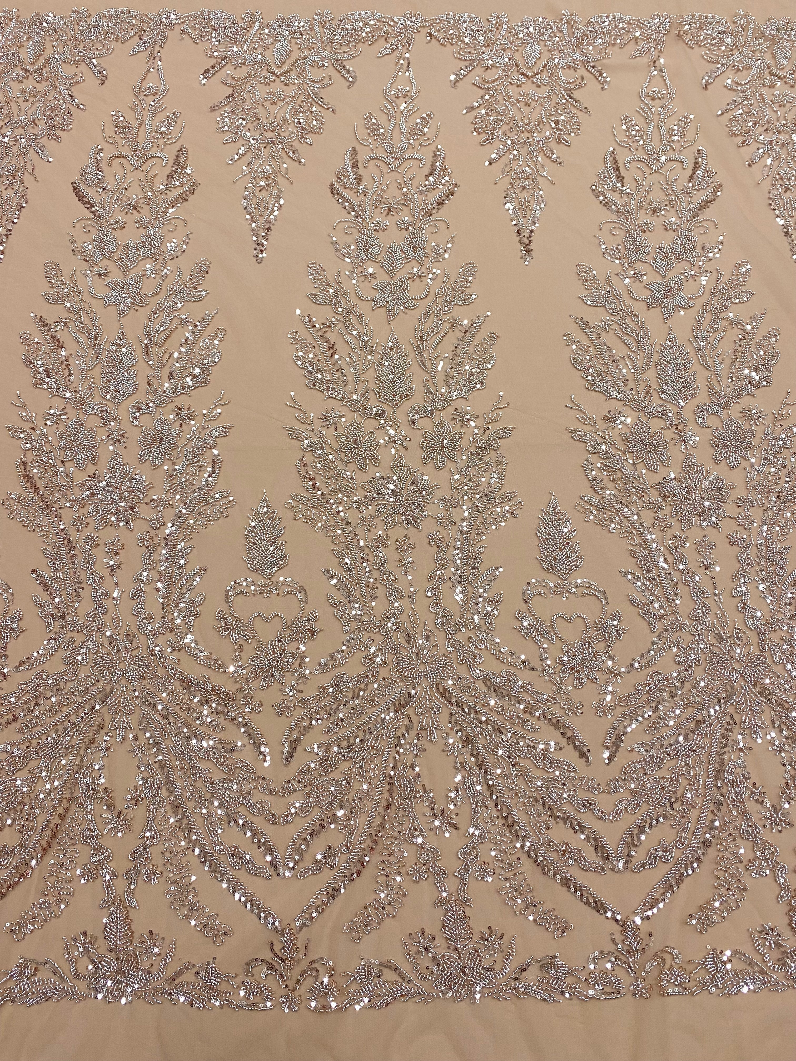 Dantela Couture Auriu Rose cu Model Floral, cu Margele si Paiete