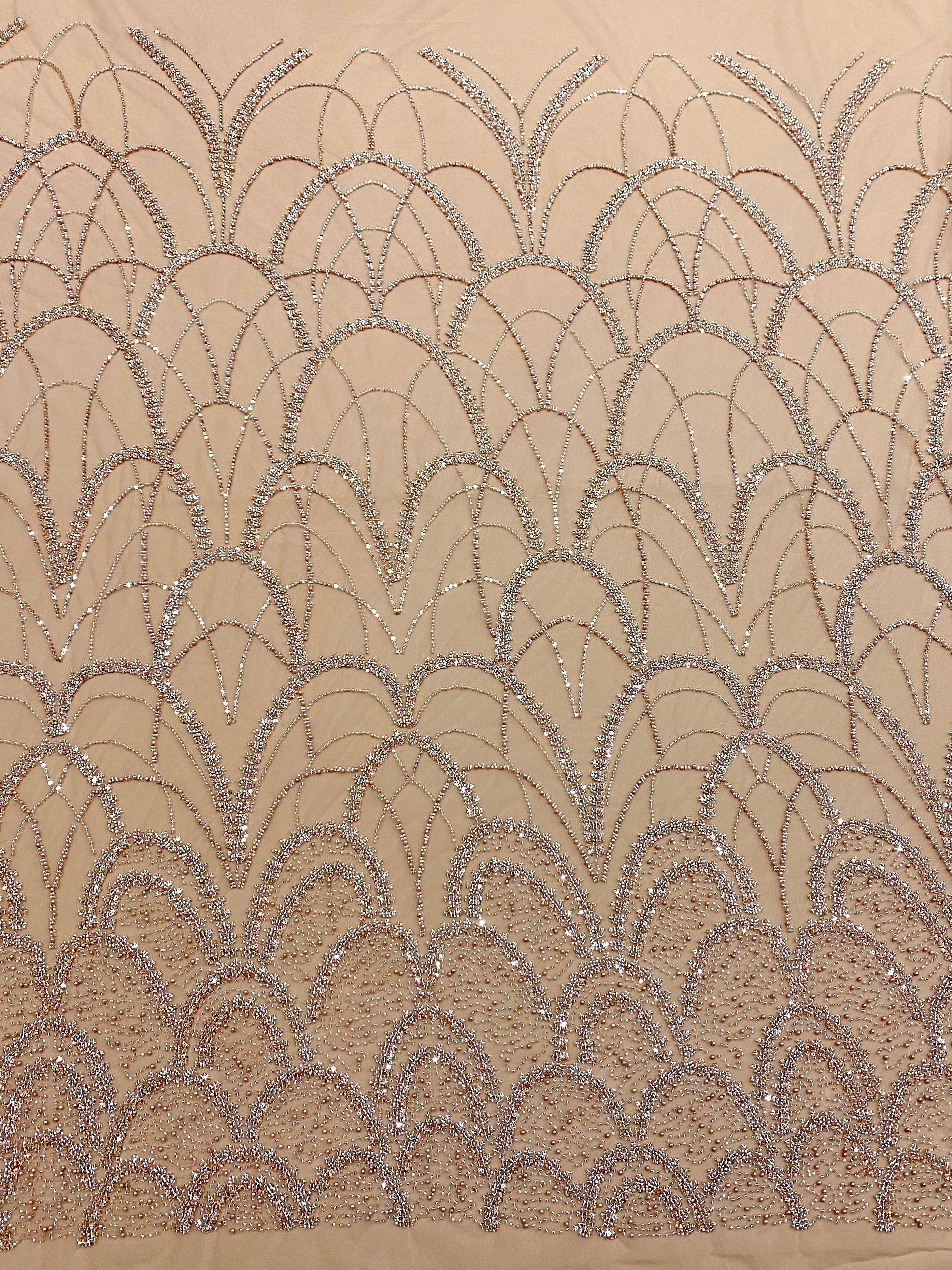 Dantela Couture Auriu Rose cu Model Geometric, cu Perle, Margele si Paiete