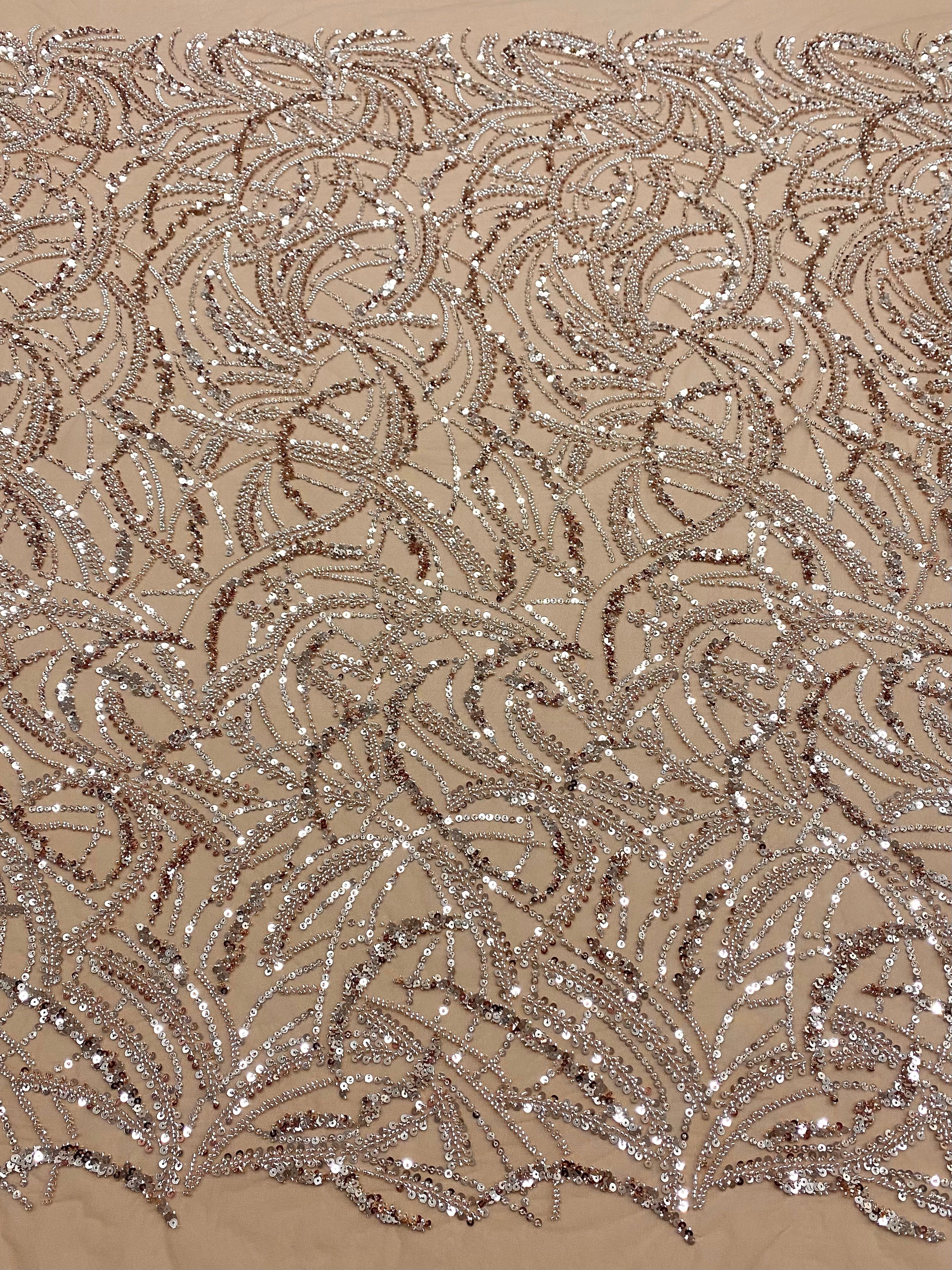 Dantela Couture Auriu Rose cu Model Geometric, Margele si Paiete