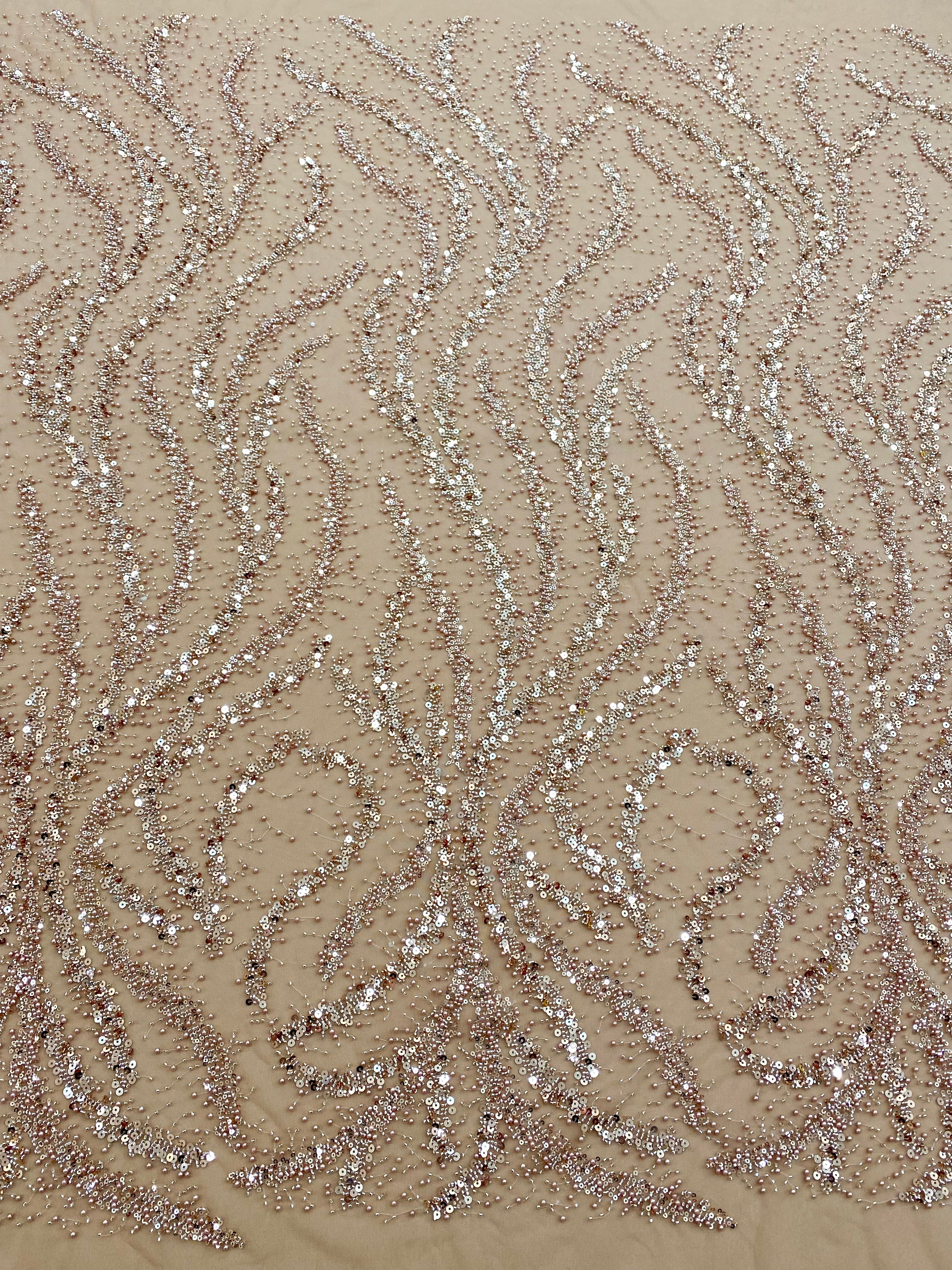 Dantela Couture Auriu Rose cu Perle, Margele si Paiete