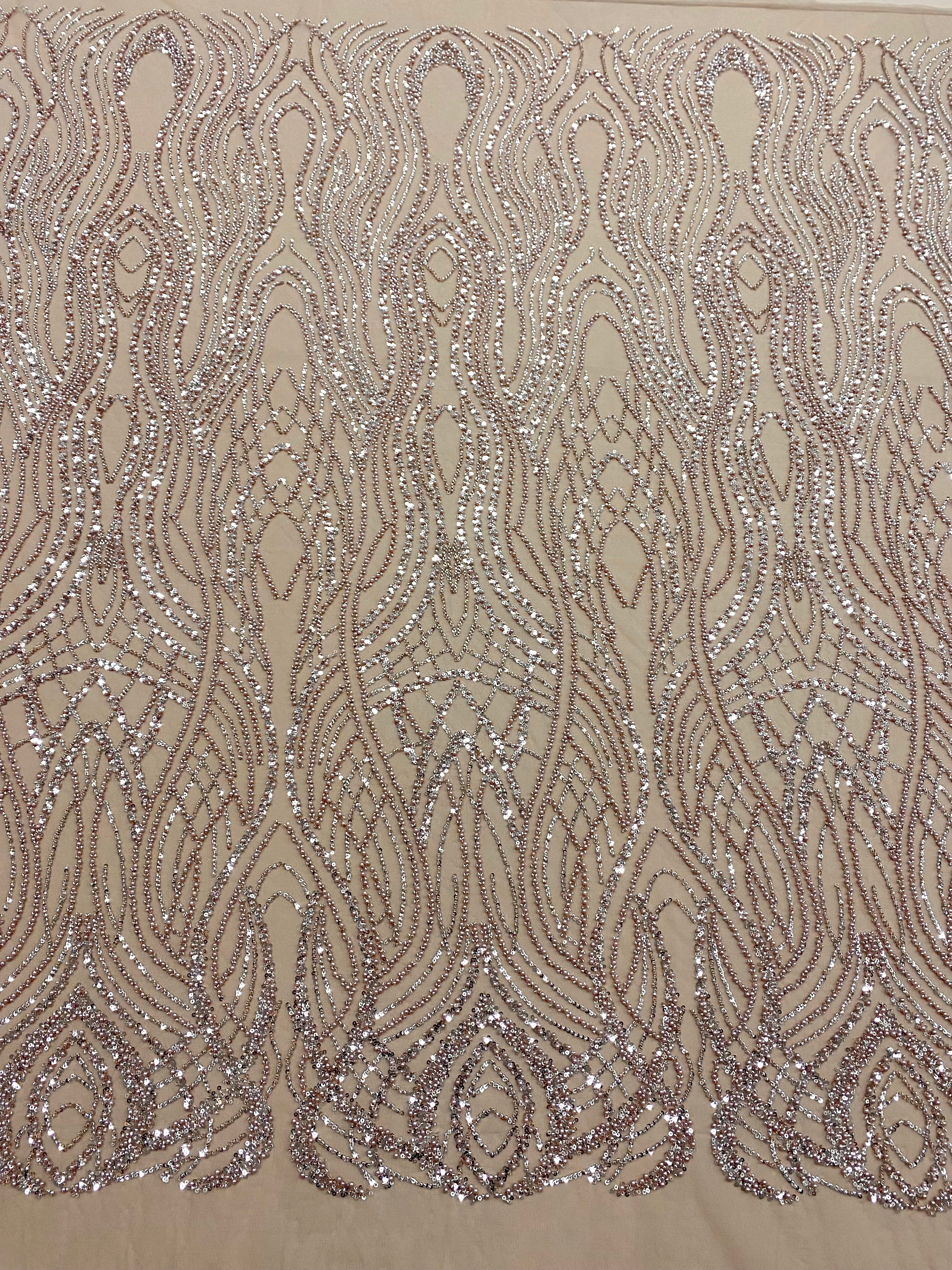 Dantela Couture Auriu Rose cu Perle, Margele si Paiete