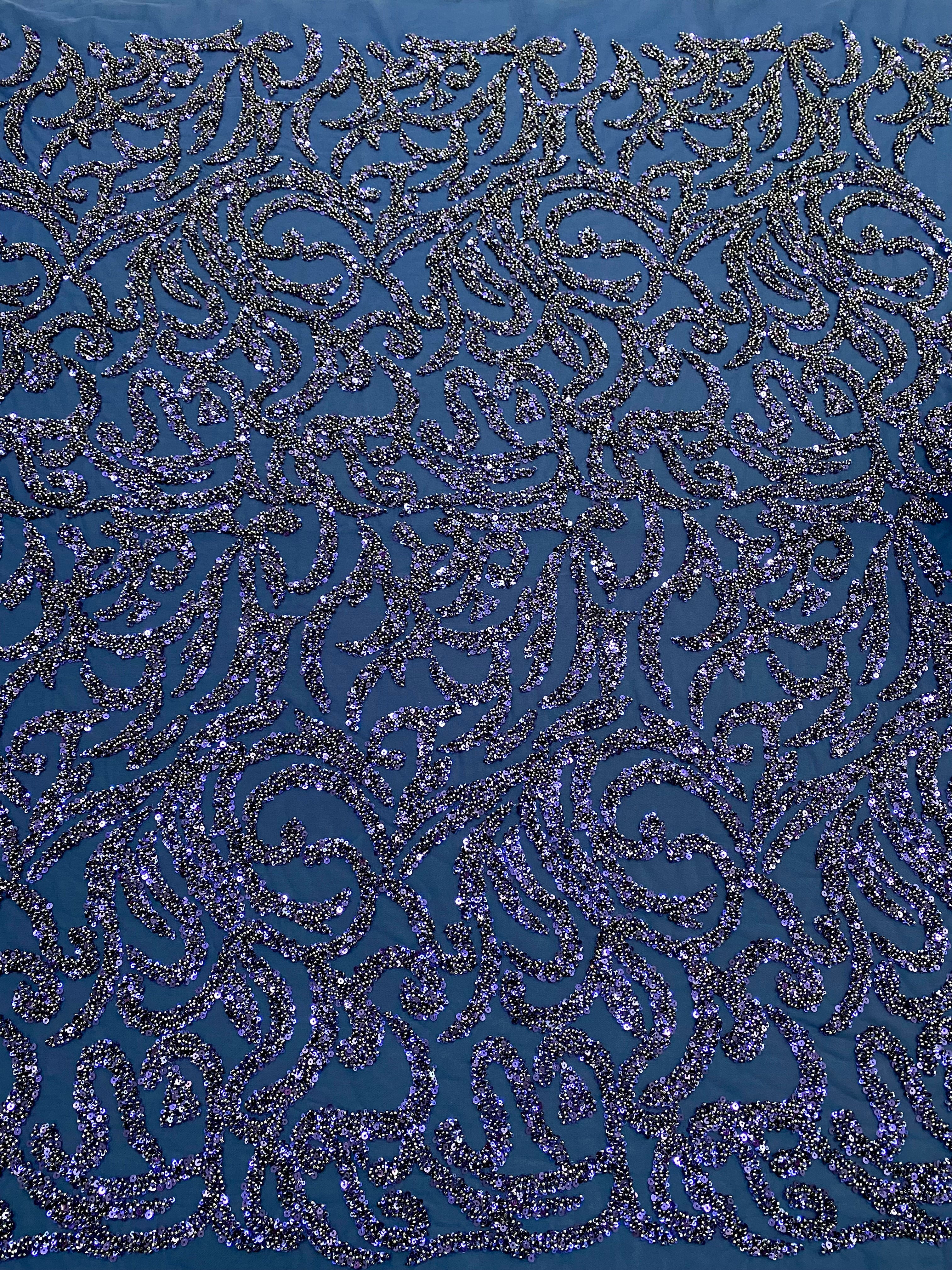 Dantela Couture Bleumarin cu Model Geometric, cu Margele si Paiete