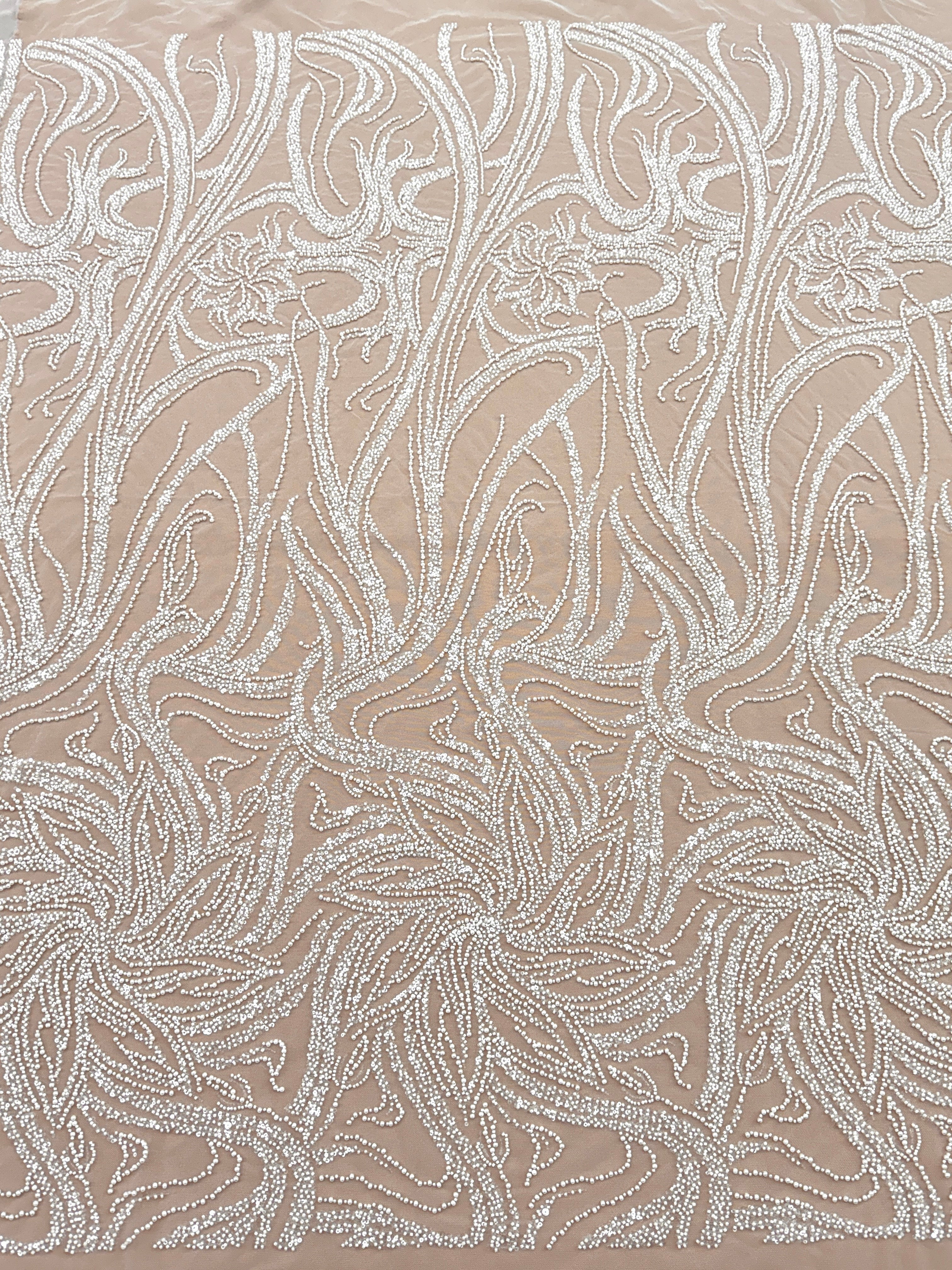 Dantela Couture Ivory cu Model Floral, Perle, Margele si Paiete