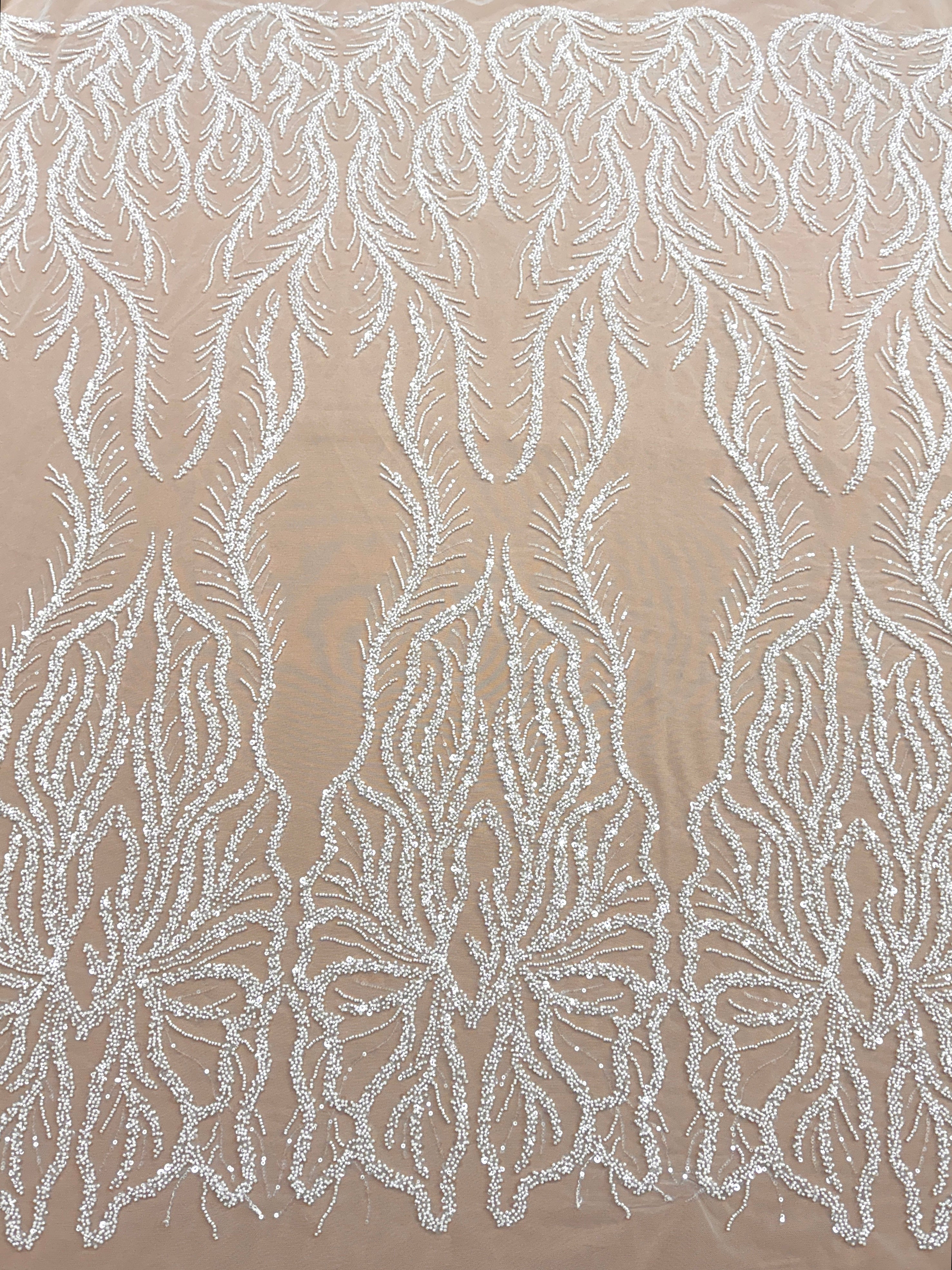 Dantela Couture Ivory cu Panou, cu Margele si Paiete