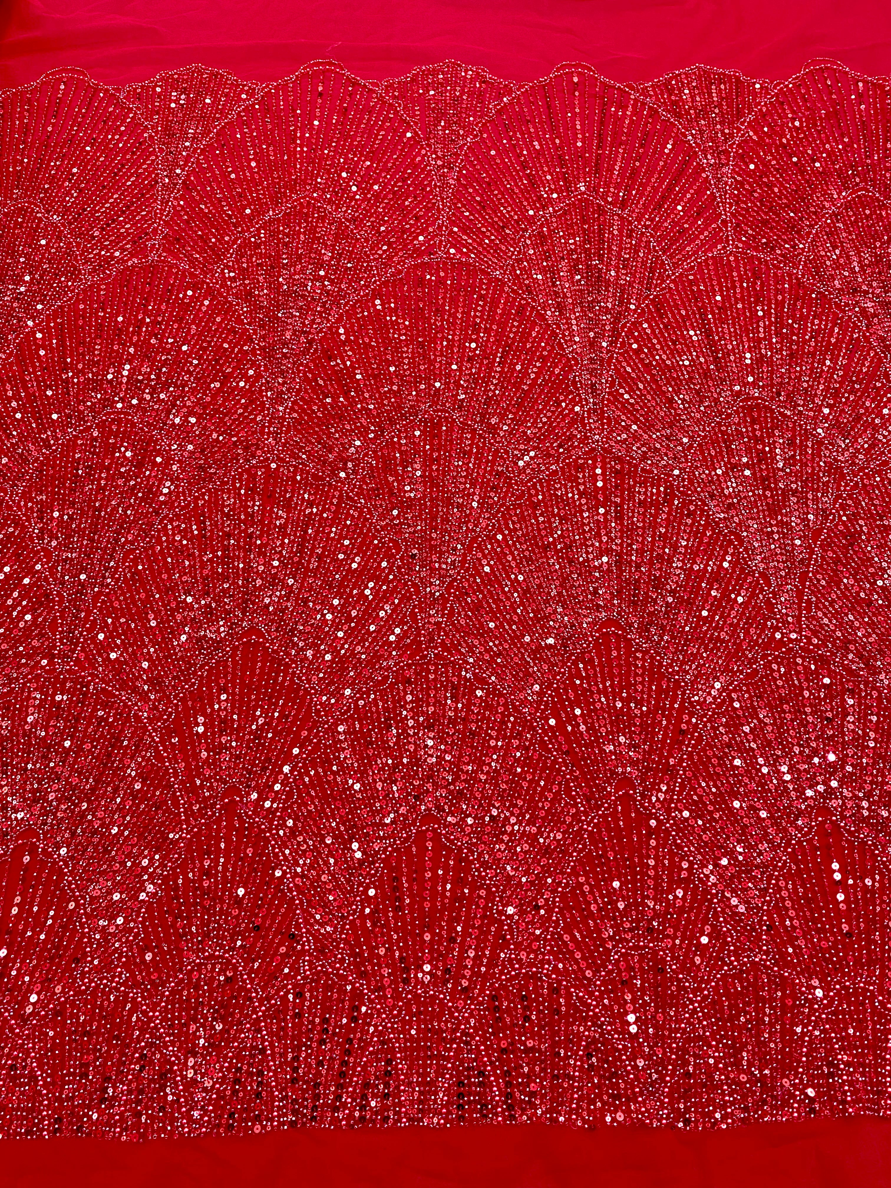 Dantela Couture Rosie cu Model Geometric, cu Perle, Margele si Paiete