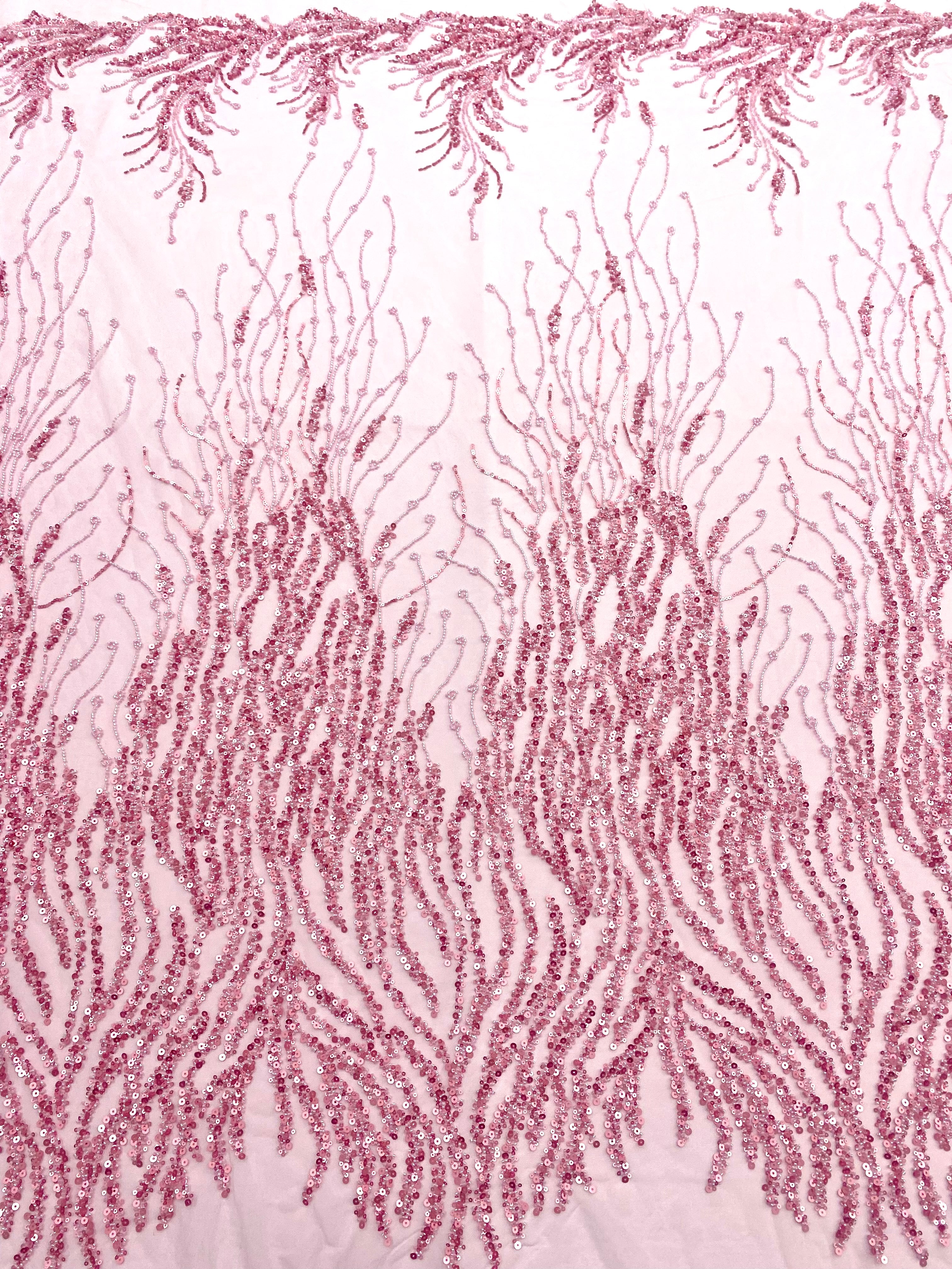Dantela Couture Roz cu Siraguri, cu Margele si Paiete