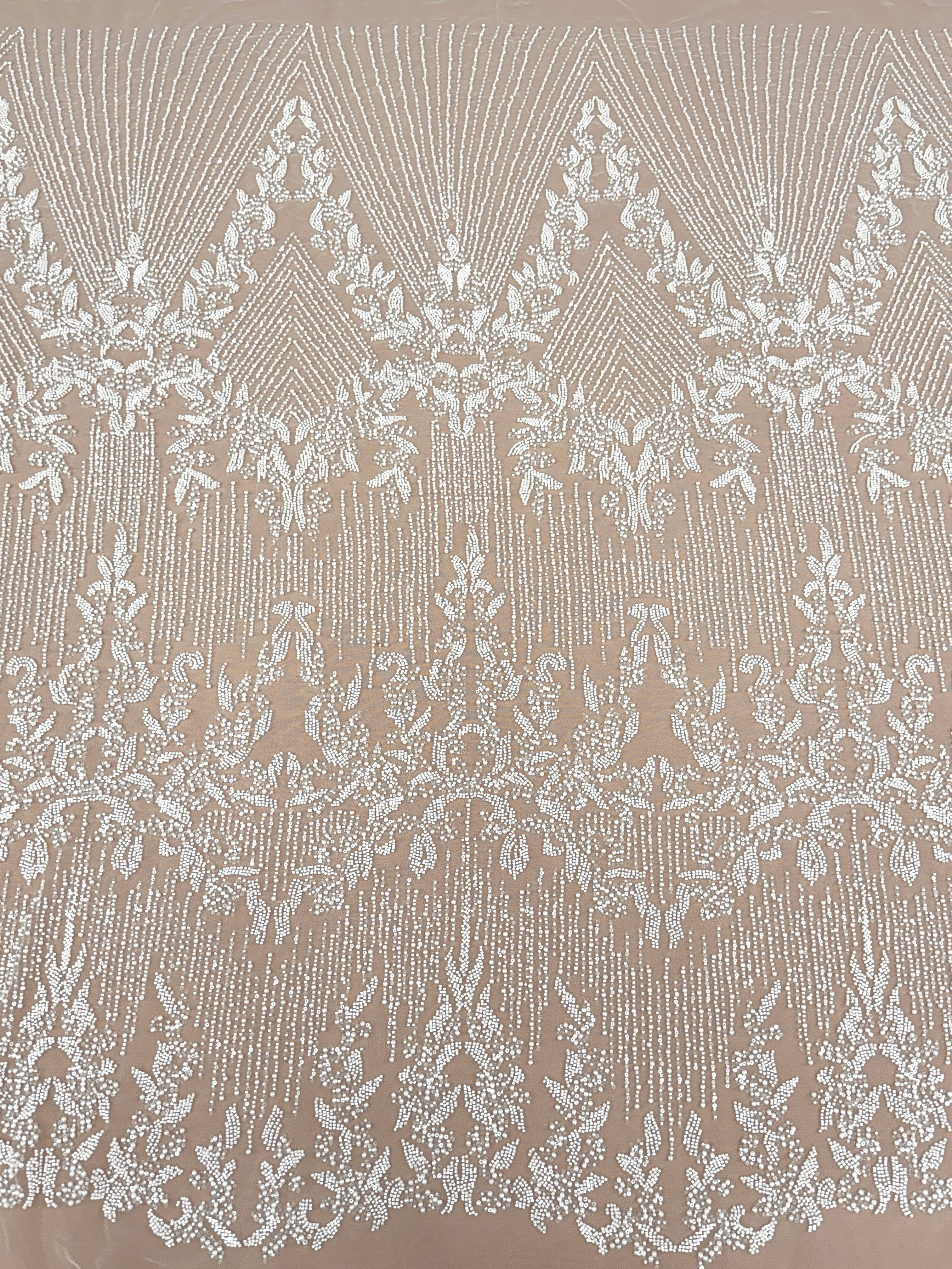 Dantela Ivory cu Model Geometric, cu Perle, Margele si Paiete